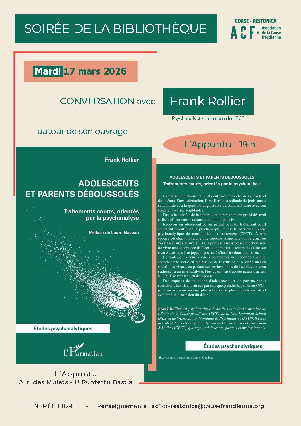 Soirée de la Bibliothèque – Frank Rollier – 17 mars 2026 16 février 2026 Évènements, Soirée de la bibliothèqueJoséphine Novelli Présentation Librairie Mollat